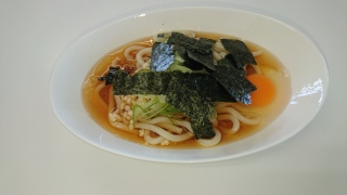 冷たいぶっかけうどん、スタッフが作ってくれました。超おいしかったです。