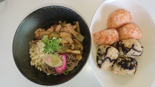かしわそば、おにぎりが、おいしかったです。スタッフの皆さんが、 作ってくれました。ありがとうございました。